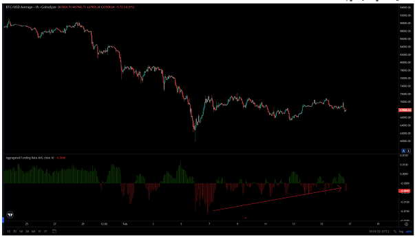 طی همین دوهفته که اوپن اینترست به نرمی در حال کاهش بود شاهد رشد فاندینگ ریت هستیم. این بدان معناست که عمده پوزیشنهایی که بسته میشوند پوزیشنهای شورت یا فروش هستند و البته در کنار این اندکی نیز شاهد باز شدن پوزیشن لانگ یا خرید هستیم. اما میزان باز شدن پوزیشنهای جدید کمتر از بسته شدن پوزیشنهای قبلی است.