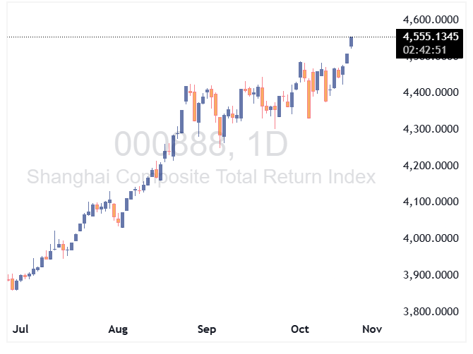 بازار سهام چین با ثبت رکوردهای جدید بسته شد و شاخص ترکیبی شانگهای به بالاترین سطح خود در یک دهه اخیر رسید. شاخص شانگهای ۰.۴۸٪، شاخص شنژن ۱.۲٪ و شاخص