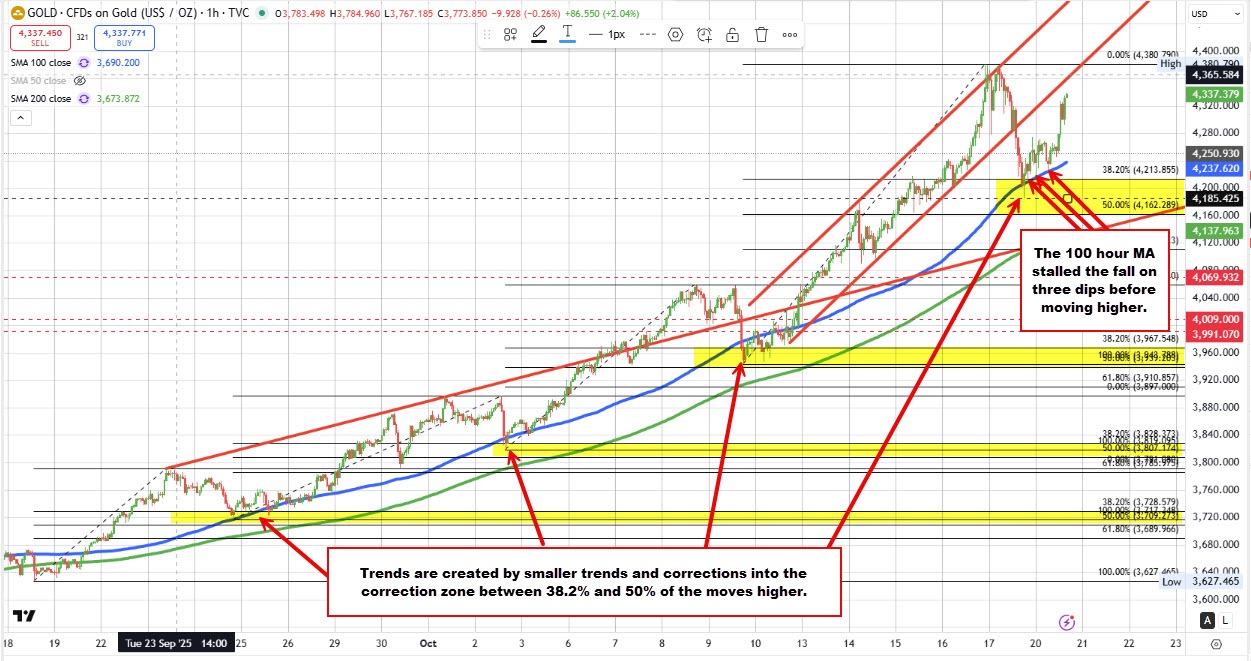 پس از یک دوره اصلاحی شدید در روز جمعه، قیمت طلا توانست در یک ناحیه حمایت کلیدی واکنش نشان دهد. این ناحیه که در محدوده اصلاح فیبوناچی ۳۸.۲٪ تا ۵۰٪