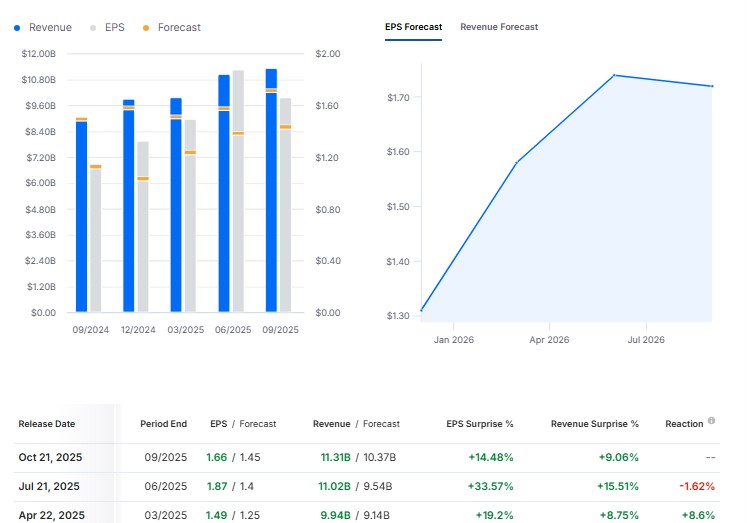 سود هر سهم (EPS) واقعی…………. 1.66 پیشبینی………… 1.45 درآمدزایی فصلی (REVENUE) واقعی………… 11.31 میلیارد دلار پیشبینی……….. 10.37 میلیارد دلار
