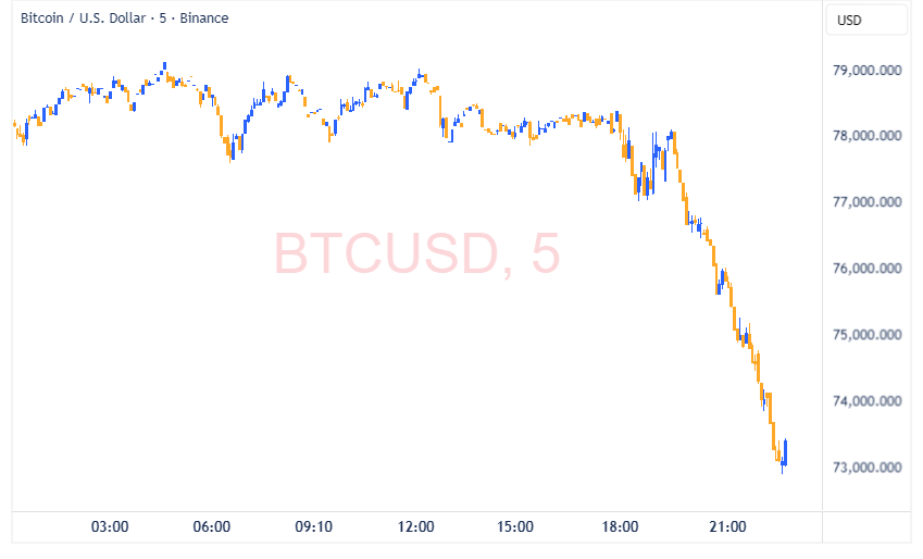 قیمت بیتکوین در یک حرکت نزولی به زیر کانال ۷۳,۰۰۰ دلار سقوط کرد. همزمان با این ریزش قیمت، دادههای بازار
