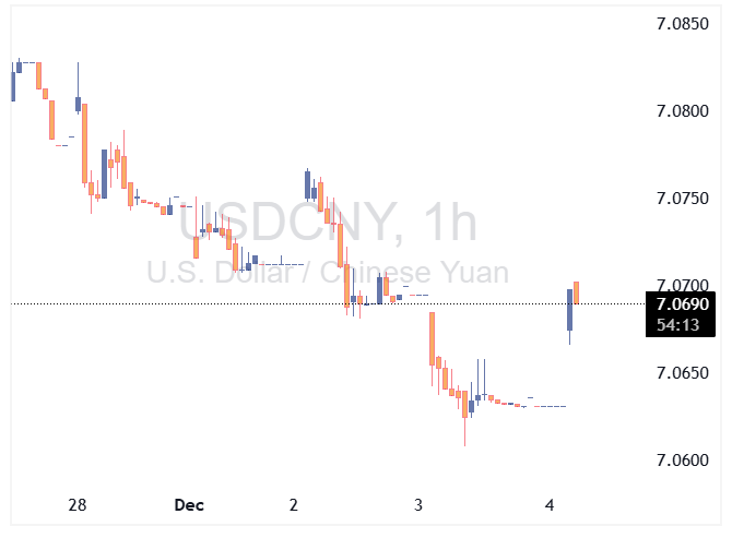 بانک خلق چین نرخ مرجع USDCNY را برای امروز در سطح ۷.۰۷۳۳ تعیین کرد، در حالی که برآوردها ۷.۰۵۵۴ بود. این اقدام نشانهای از تلاش بانک برای کند کردن روند