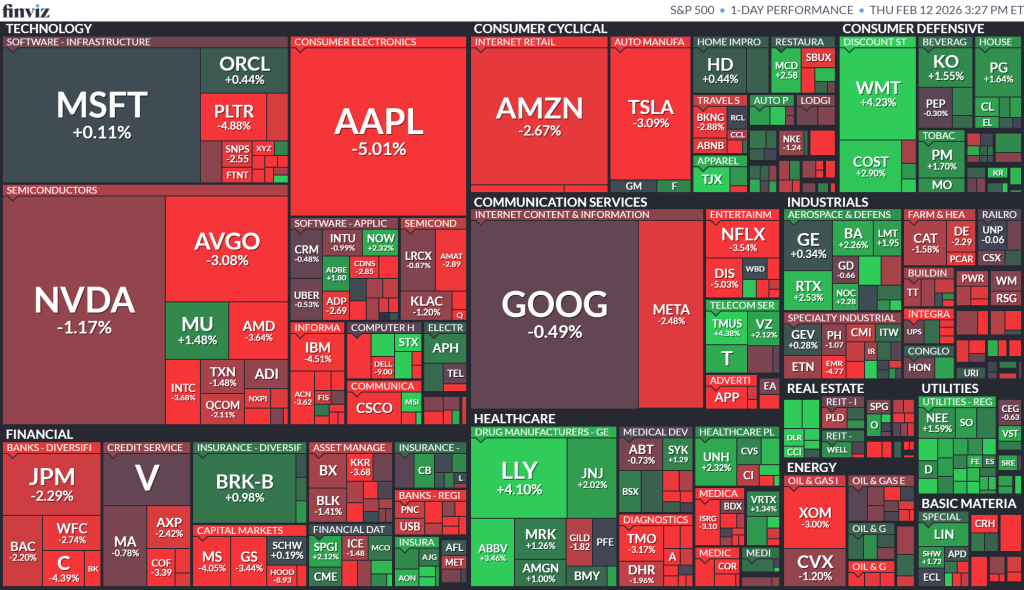 در یک نگاه ترس از «اختلال هوش مصنوعی» باعث خروج سرمایه از بخش تکنولوژی و سقوط شاخصهای اصلی بورس آمریکا