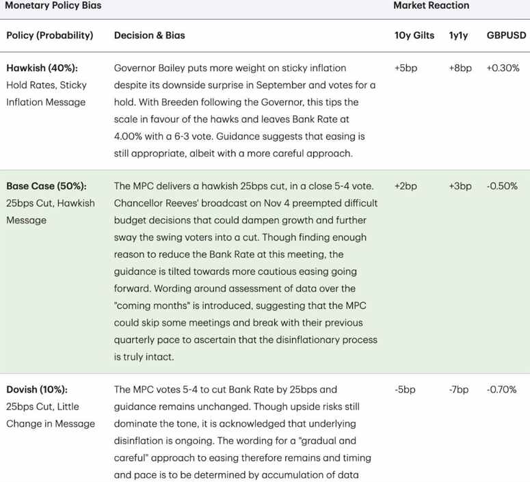 موسسه TD Securities پیشبینی کرده است که بانک مرکزی انگلستان در نشست امروز خود یک کاهش نرخ بهره ۲۵ نقطه پایهای را با رأیی نزدیک (احتمالاً ۵ به ۴) تصویب