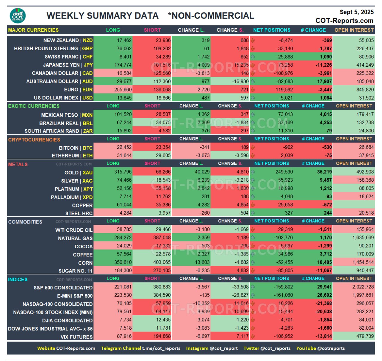 گزارش COT ابزاری کلیدی برای شناخت جهتگیری معاملهگران بزرگ در بازارهای جهانی است. دادههای منتشر شده در تاریخ ۵ سپتامبر ۲۰۲۵ نشان میدهد که تغییرات مهمی در ارزها، فلزات گرانبها،