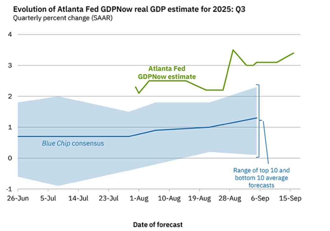بانک فدرال رزرو آتلانتا در تازهترین بهروزرسانی مدل GDPNow اعلام کرد رشد تولید ناخالص داخلی واقعی آمریکا در سهماهه سوم ۲۰۲۵ با نرخ سالانه تعدیلشده فصلی، به ۳.۴ درصد افزایش